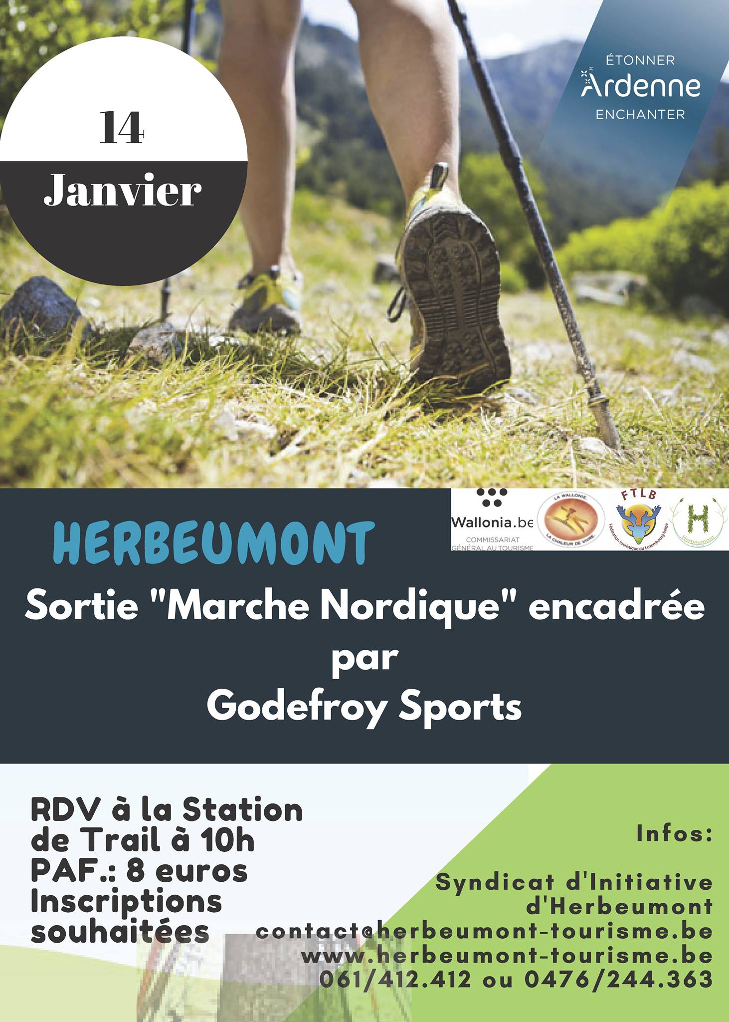 Sortie Marche Nordique avec guide Sortie Marche Nordique encadrée par Godefroy Sports RDV à 10h devant la station de Trail PAF.: 8 euros Terung naar de list